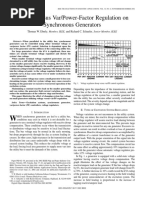 This document discusses the 39 years of experience New England Electric has had using resonant neutral grounding (GFN) on unit-connected generators. GFN limits fault currents to low values while still allowing detection of high-impedance faults. It does this through a tuned parallel resonant circuit comprising a ground fault neutralizer. Two specific examples are described: a 528 MVA generator at Brayton Point that experienced an overvoltage but avoided shutdown after the fault was corrected, and a generator winding fault at Salem Harbor Unit 2. The protection method uses overvoltage relays to detect faults based on elevated voltages from fault currents through the high-resistance neutral grounding circuit.