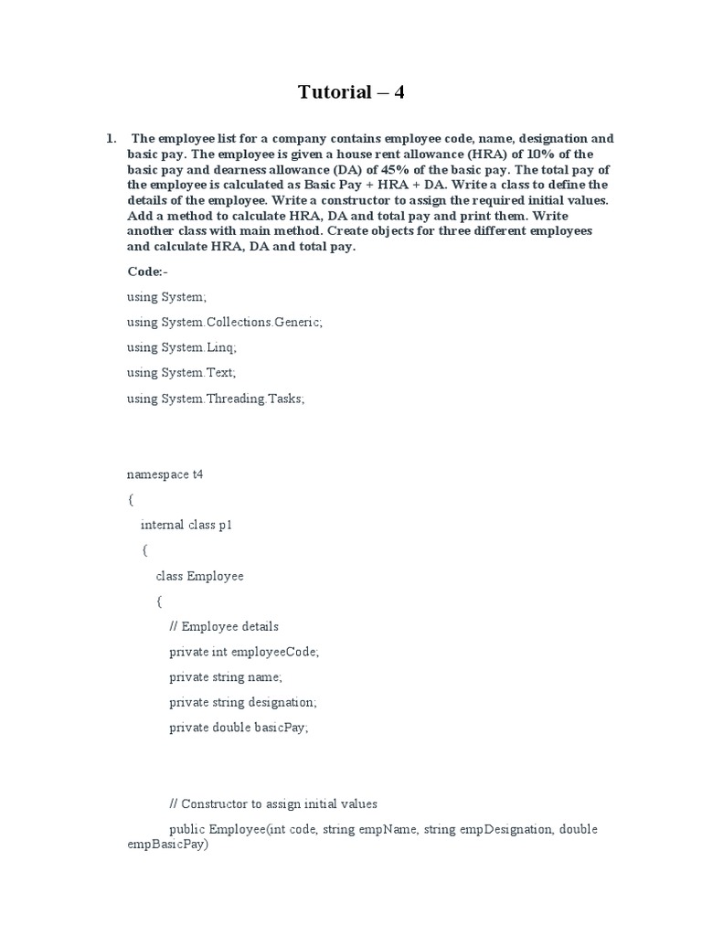 the employee is calculated as Basic Pay + HRA + DA. Write a class to define the