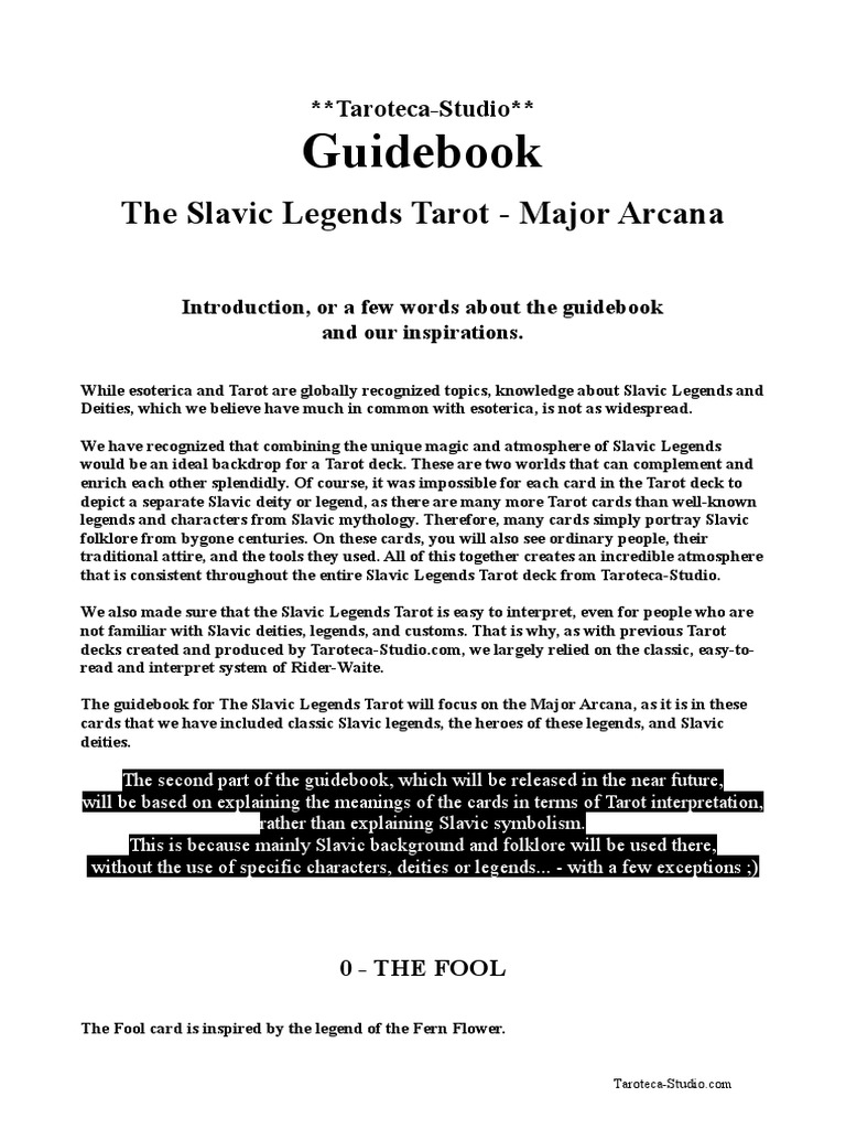 The guidebook for The Slavic Legends Tarot will focus on the Major Arcana, as it is in these