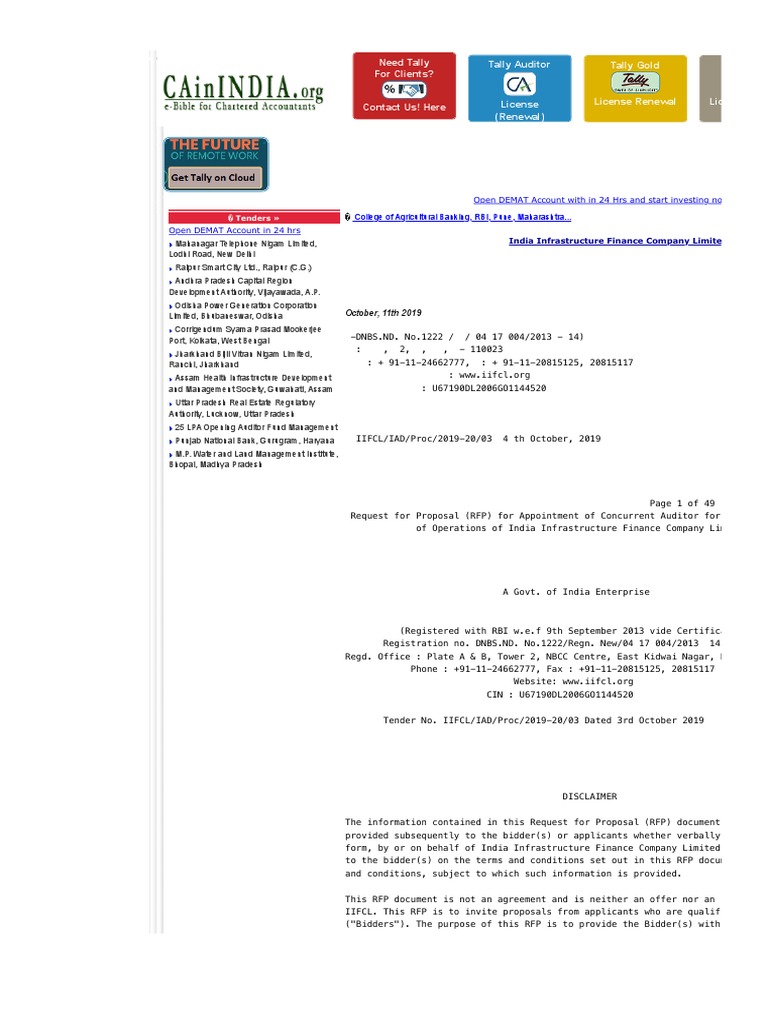 IIFCL. This RFP is to invite proposals from applicants who are qualified to su