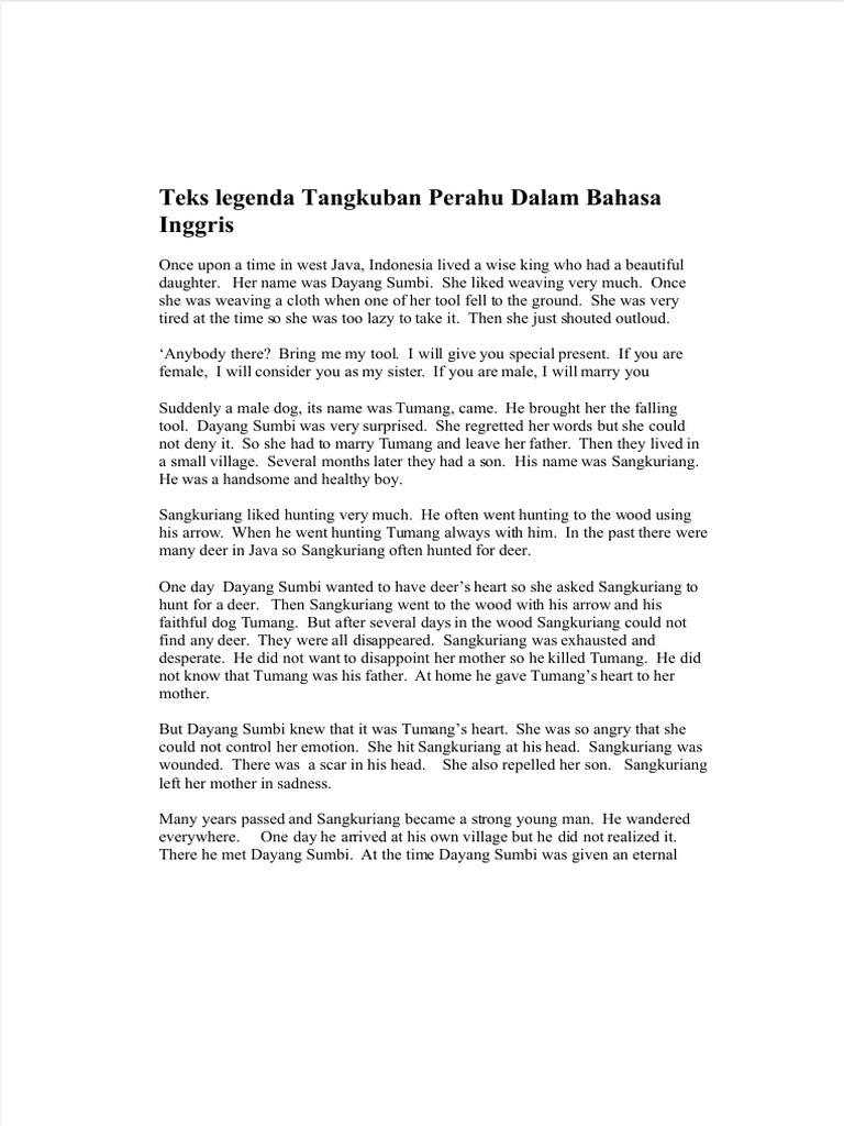 Teks legenda Tangkuban Perahu Dalam Bahasa