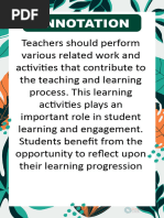 This document outlines the objectives and measures of a teacher's professional development plan. It includes 12 objectives across 5 key result areas: content knowledge and pedagogy; learning environment and diversity; curriculum and planning; assessment and reporting; and personal growth. The objectives are focused on applying knowledge, managing learning environments, planning instruction, using assessments, and engaging in professional learning. Progress is measured through classroom observations, participation in professional development, analysis of learner data, and communication with stakeholders.