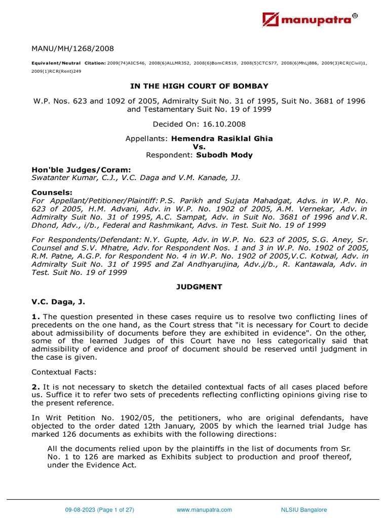 09-08-2023 (Page 1 of 27) www.manupatra.com NLSIU Bangalore