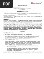 The document discusses the period of limitation for making a deposit to apply to set aside the sale of immovable property sold in execution of a decree. It analyzes the relevant provisions of the Limitation Act and Code of Civil Procedure. It holds that the deposit must be made within 30 days as required by the Code, while an application under the relevant rule can be made within 60 days as prescribed by the Limitation Act.