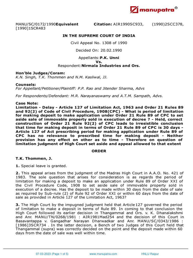 07-03-2023 (Page 5 of 5) www.manupatra.com HNLU Raipur