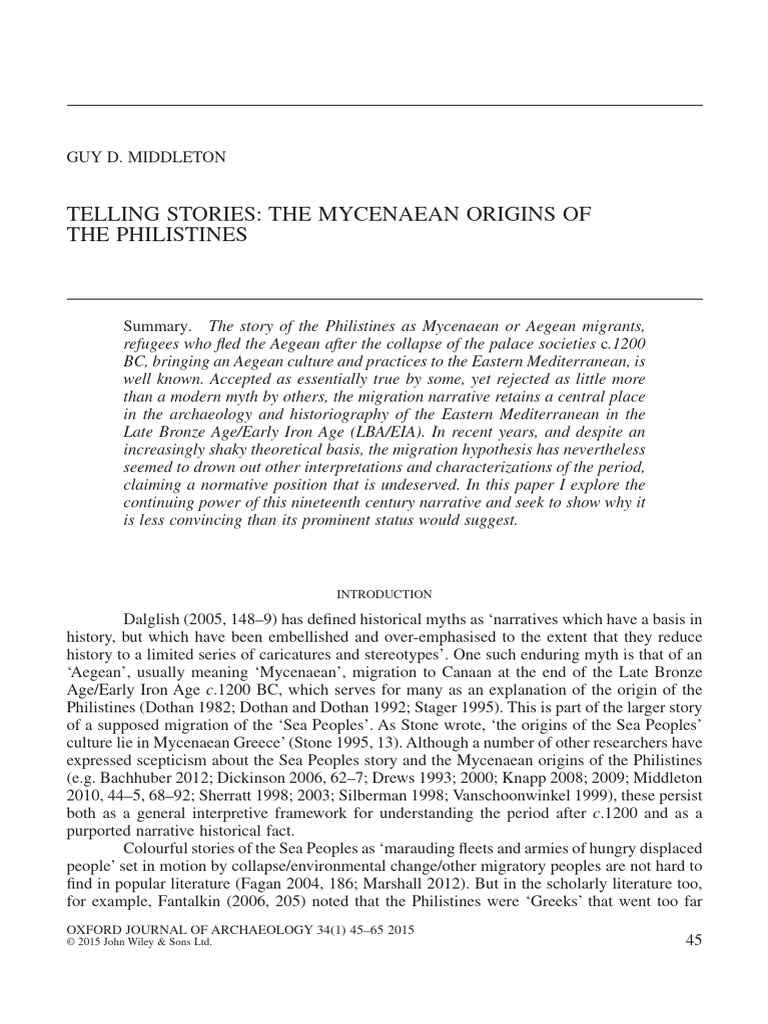 TELLING STORIES: THE MYCENAEAN ORIGINS OF THE PHILISTINES