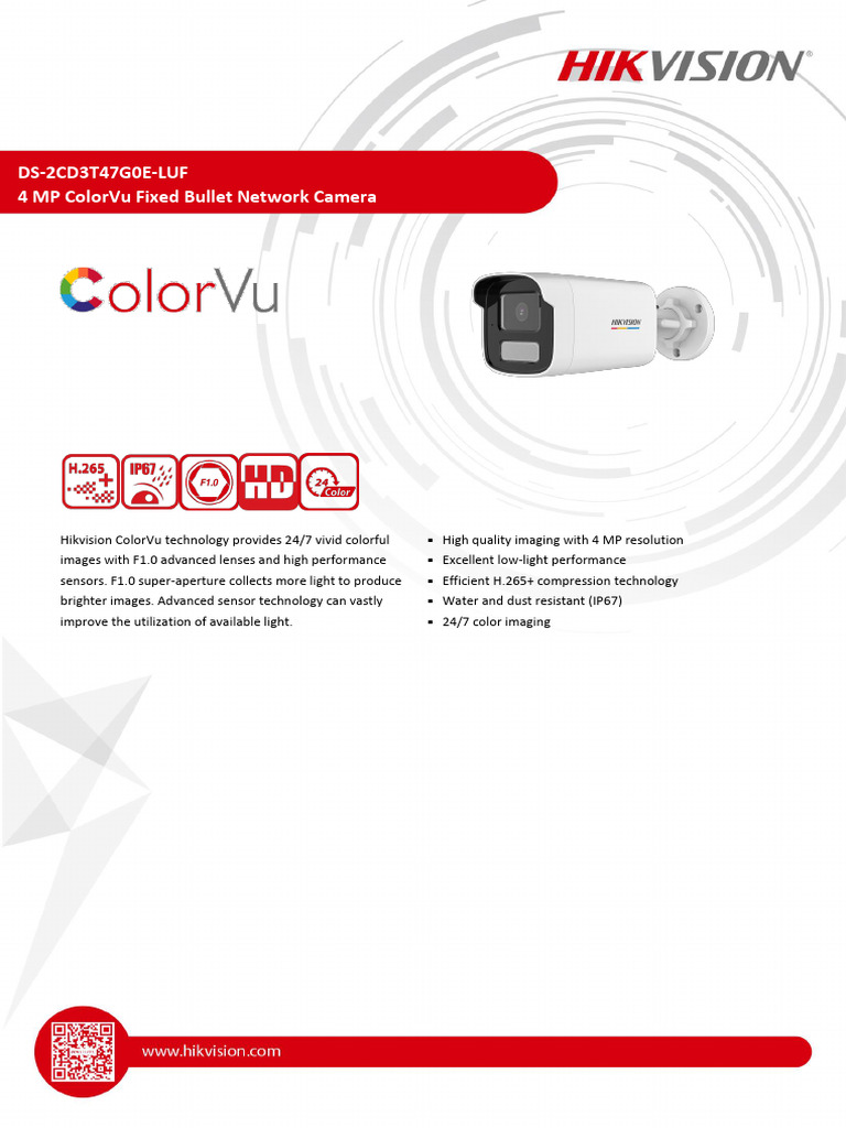 Hikvision ColorVu technology provides 24/7 vivid colorful        High quality imaging with 4 MP resolution