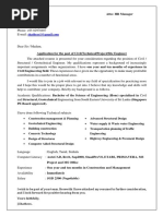 Academic Summary : Course Institution University Duration Course Institution University Duration : : : : : : : : M.E. (Structural Engineering) S.R.M Engineering College, Chennai. Anna University, Chennai, Tamilnadu.India 2002-2004 B.E (Civil Engineering) Hindustan Engineering College, Madras University, Chennai, Tamilnadu.India 1998 2002
