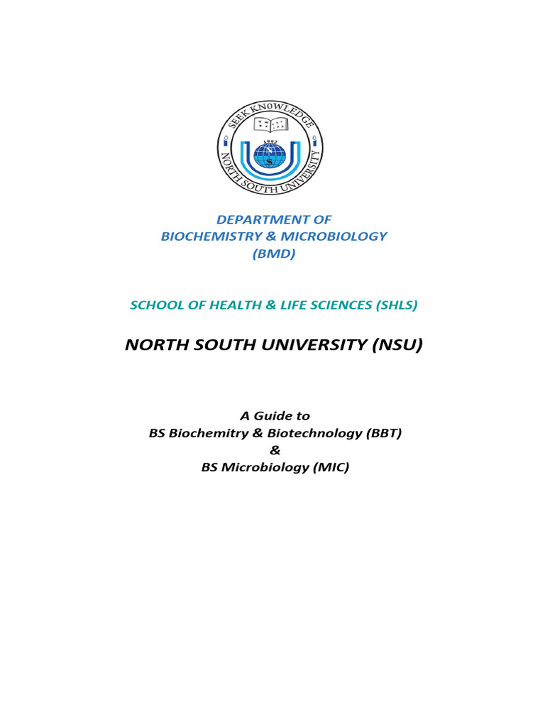 North South University (Nsu) : Department of Biochemistry & Microbiology (BMD)