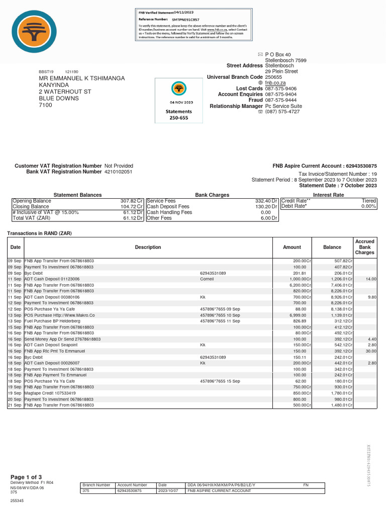 375 375 62943530875 2023/10/07 FNB ASPIRE CURRENT ACCOUNT