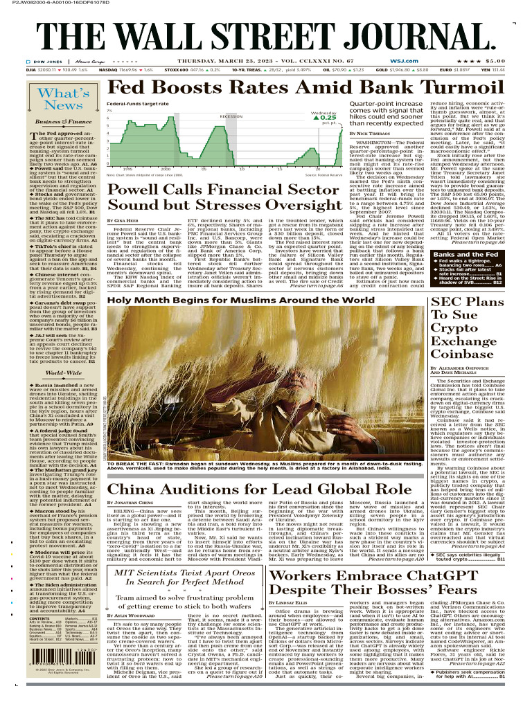 * * * * * * THURSDAY, MARCH 23, 2023 ~ VOL. CCLXXXI NO. 67 WSJ.com HHHH $5.00