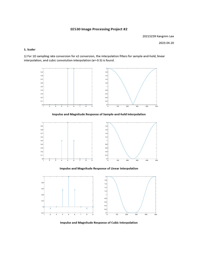 1) For 1D sampling rate conversion for x2 conversion, the interpolation filters for sample-and-hold, linear