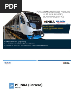 This document provides an overview of PT Industri Kereta Api (Persero), the state-owned railway rolling stock manufacturer in Indonesia. It discusses INKA's profile, supply record, organizational structure, production processes, and transportation concepts. INKA was established in 1981 and manufactures locomotives, passenger coaches, freight wagons, and other rail vehicles. It supplies products domestically and internationally to countries in Southeast Asia, Australia, and New Zealand. The document outlines INKA's manufacturing processes for carbody and bogie production.
