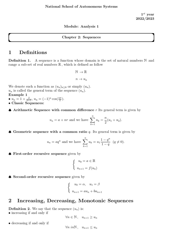2 Increasing, Decreasing, Monotonic Sequences