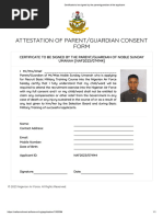 CERTIFICATE TO BE SIGNED BY THE PARENT/GUARDIAN OF