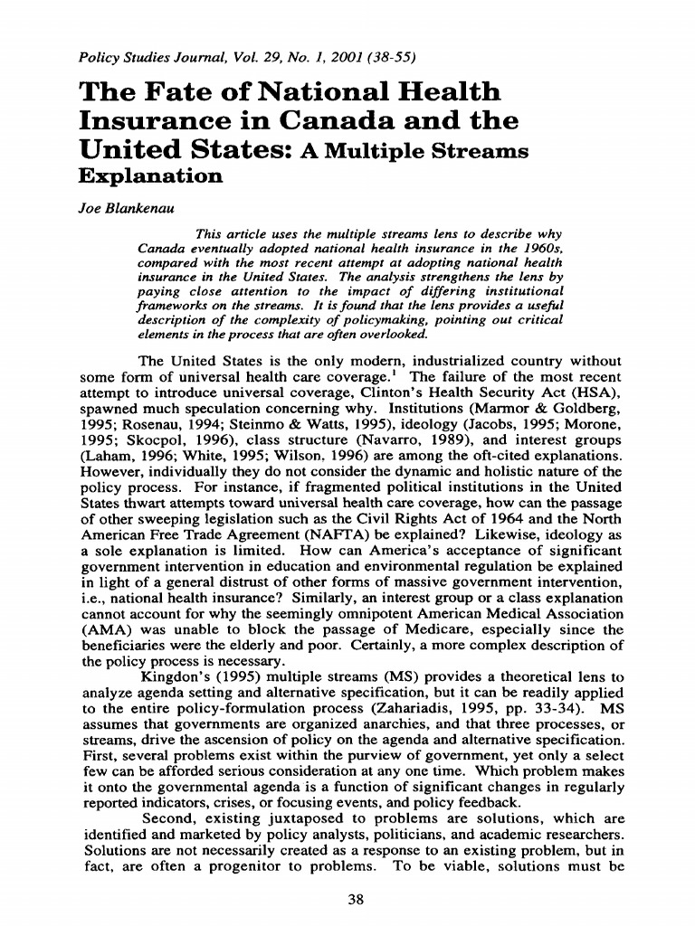 Steinmo, S., & Watts, J. (1995). It’s the institutions stupid! Why comprehensive national health