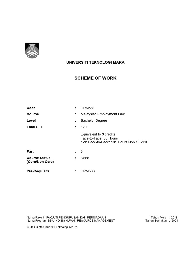 employers and employees and be able to apply the Malaysian employment legislation at the