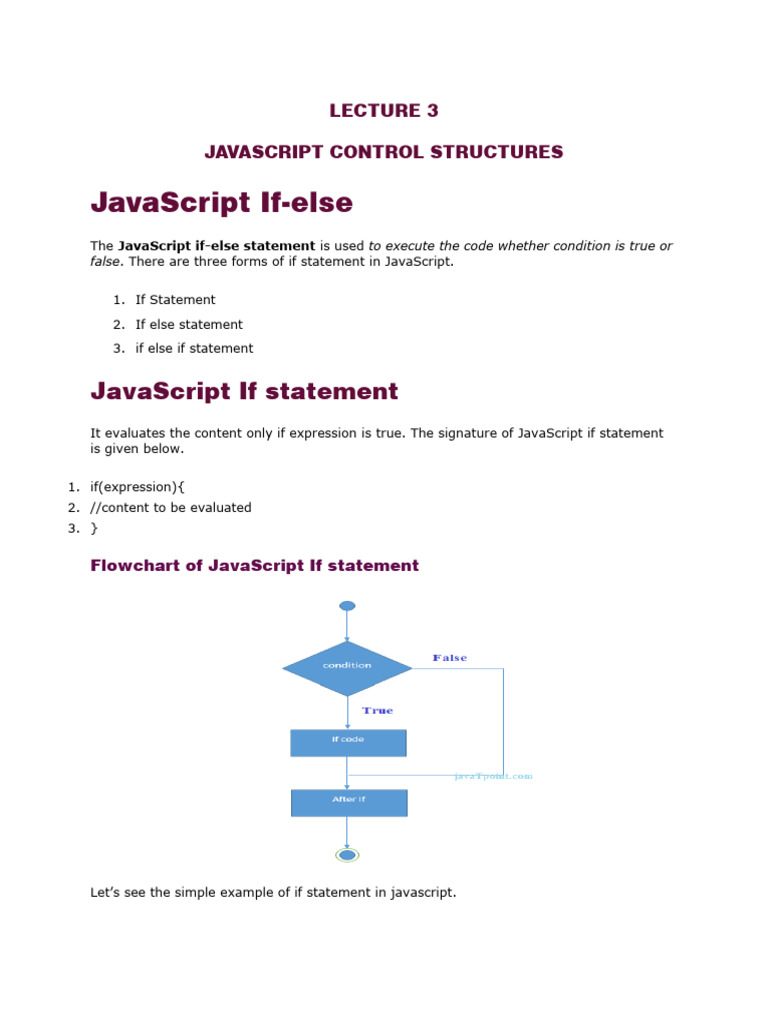 It evaluates the content whether condition is true of false. The syntax of JavaScript if-else