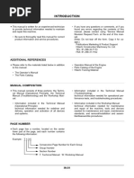 This document provides an introduction and overview of a service manual for maintaining and repairing a machine. It explains that the manual is intended for experienced technicians and consists of technical and workshop manuals. It also outlines safety symbols and procedures for emergency preparedness when working with the equipment.
