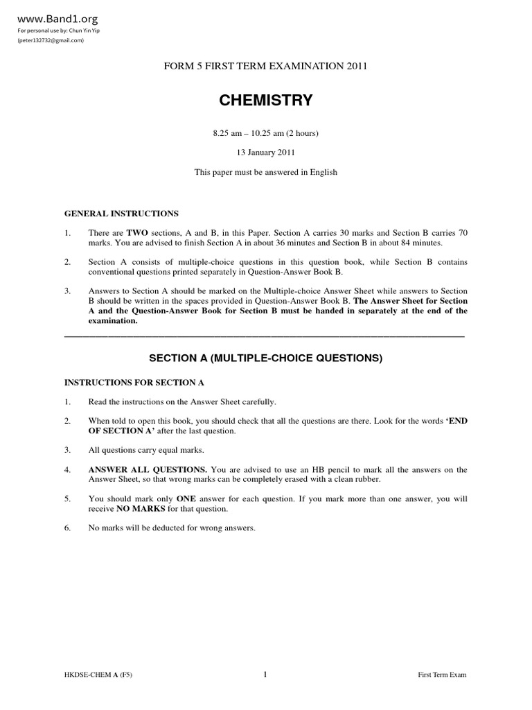 HKDSE-CHEM A (F5) 1 First Term Exam