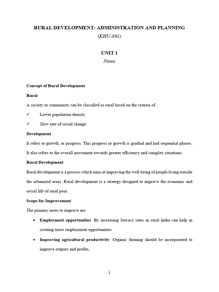 planning is vital for rural development. The balanced growth of the agricultural sector can play