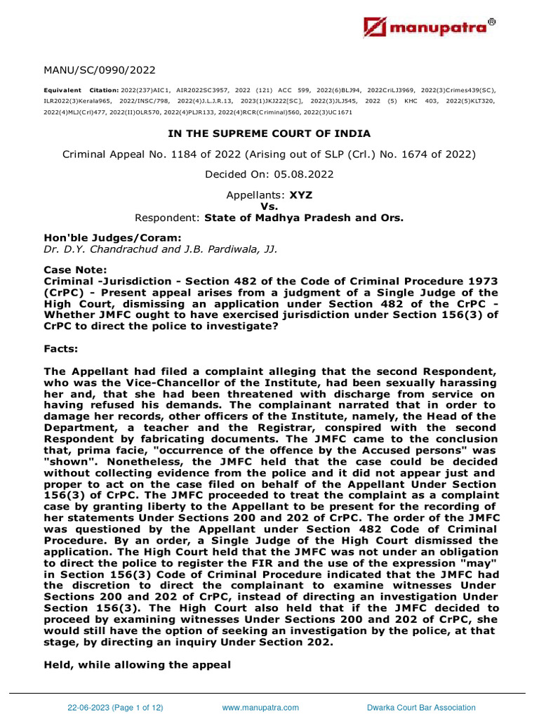 22-06-2023 (Page 1 of 12) www.manupatra.com Dwarka Court Bar Association