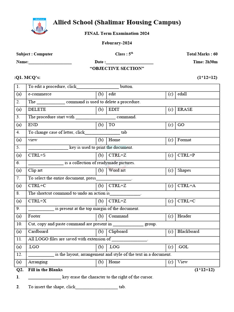 Q4. Attempt (any 7) questions from the given section: (7*2=14)