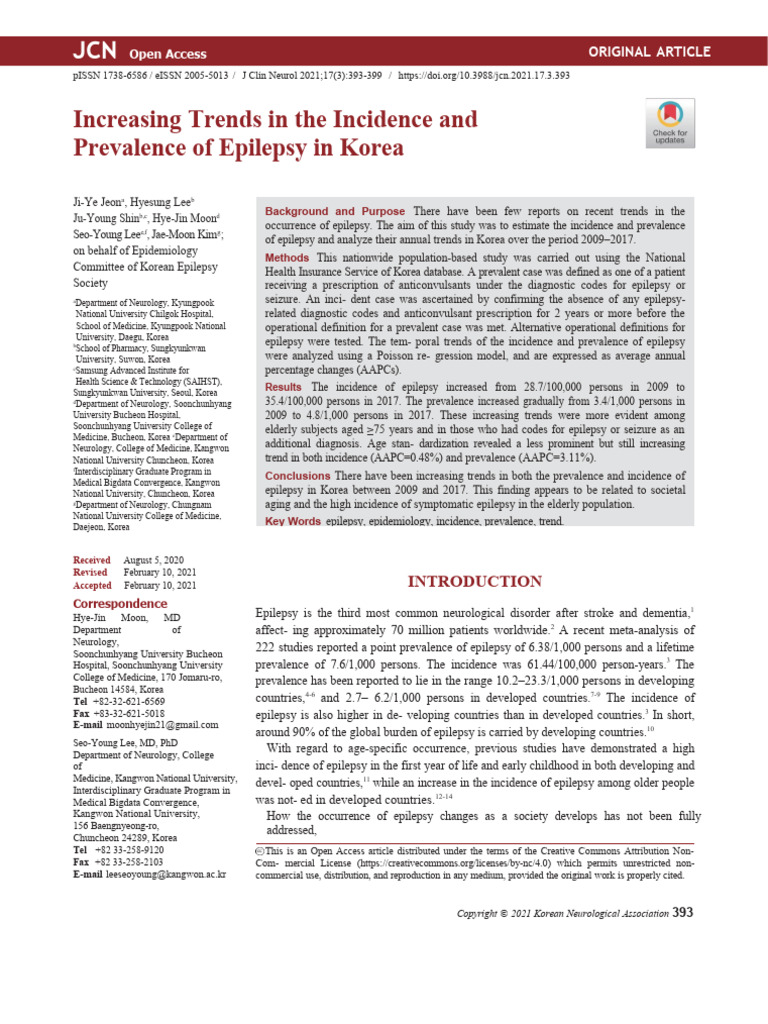Seo-Young Leee,f, Jae-Moon Kimg; of epilepsy and analyze their annual trends in Korea over the period 2009–2017.