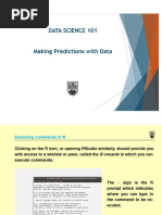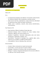 This document provides an introduction and overview of the R programming language for statistics. It discusses: - What R is and its origins as a scripting language for statistical analysis inspired by S. - The advantages of using R, including its low cost, powerful statistical capabilities, and ability to automate analyses and create custom functions. - How to run R in both interactive and batch modes from the command line. - Key concepts like R sessions, functions, built-in vs. user-defined functions, and how to call functions with arguments.
