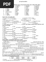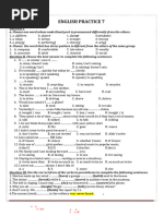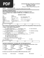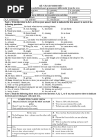 This document contains a practice test for 6th grade students preparing for the Vietnamese high school graduation exam. It includes 7 sections with a total of 58 multiple choice questions to assess students' English language skills, including vocabulary, grammar, reading comprehension. The questions cover topics such as pronunciation, word stress patterns, sentence structure, verb tenses, word forms, and understanding short passages.