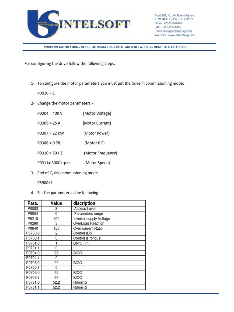 1‐ To configure the motor parameters you must put the drive in commissioning mode: