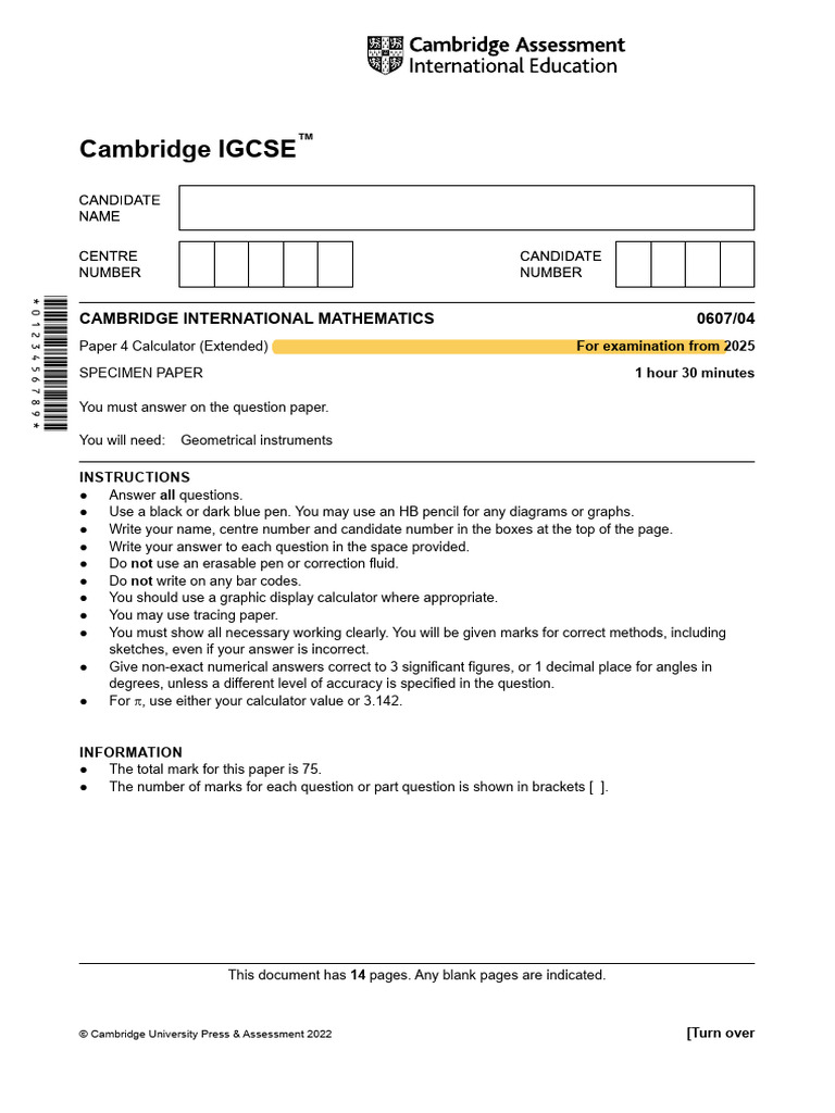 CAMBRIDGE INTERNATIONAL MATHEMATICS 0607/04