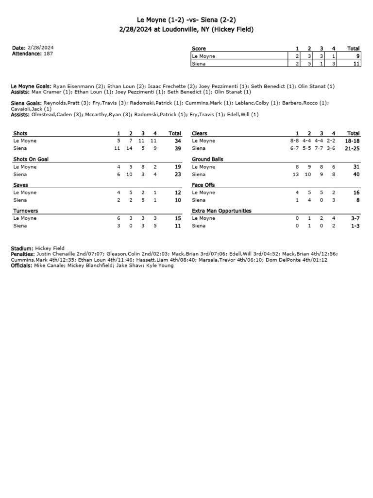 Le Moyne 7, Siena 8