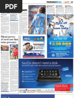 Ashwin could combine better with Harbhajan; the two are very different off-spinners and will not cut into each other. India also has a wonderful opportunity to include left-arm paceman Ashish Nehra. There have been speculations about the level of Nehras tness. If India intends to play him in future games, he has to be tried now. Bowlers returning from injury need to rediscover their rhythm and Nehra deserves a look-in. Munaf Patel or Zaheer could be rested for the purpose. Indias last ODI at the Kotla against Sri Lanka in late 2009 had to be abandoned after 23.3 overs on account of the pitch behaving in a dangerous manner. The surface for Wednesdays match should hold no devils though. The pitch is expected to be a slow turner; there could be some assistance for the pacemen early on. The match presents the Netherlands another chance to showcase its players. The side fought hard against England, displayed plenty of spunk. In Ryan ten Doeschate it has a ne batsman who uses his feet and possesses a sense of timing. The bowling, though, is mediocre.