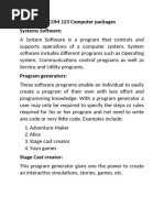 The document provides an overview of computer engineering course material for week 1. It defines systems software, program generators, and application packages. It also lists examples of program generators and categorizes different types of software packages.