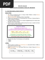 The document discusses several organic chemistry concepts: 1. It describes different types of isomerism including structural isomerism (chain, position, functional group), stereoisomerism (geometric, optical), and metamerism. 2. It explains electron displacement effects including inductive effects and resonance effects, with electron withdrawing groups having -I or -R effects and electron donating groups having +I effects. 3. It outlines homolytic and heterolytic cleavage of covalent bonds and defines nucleophiles and electrophiles.