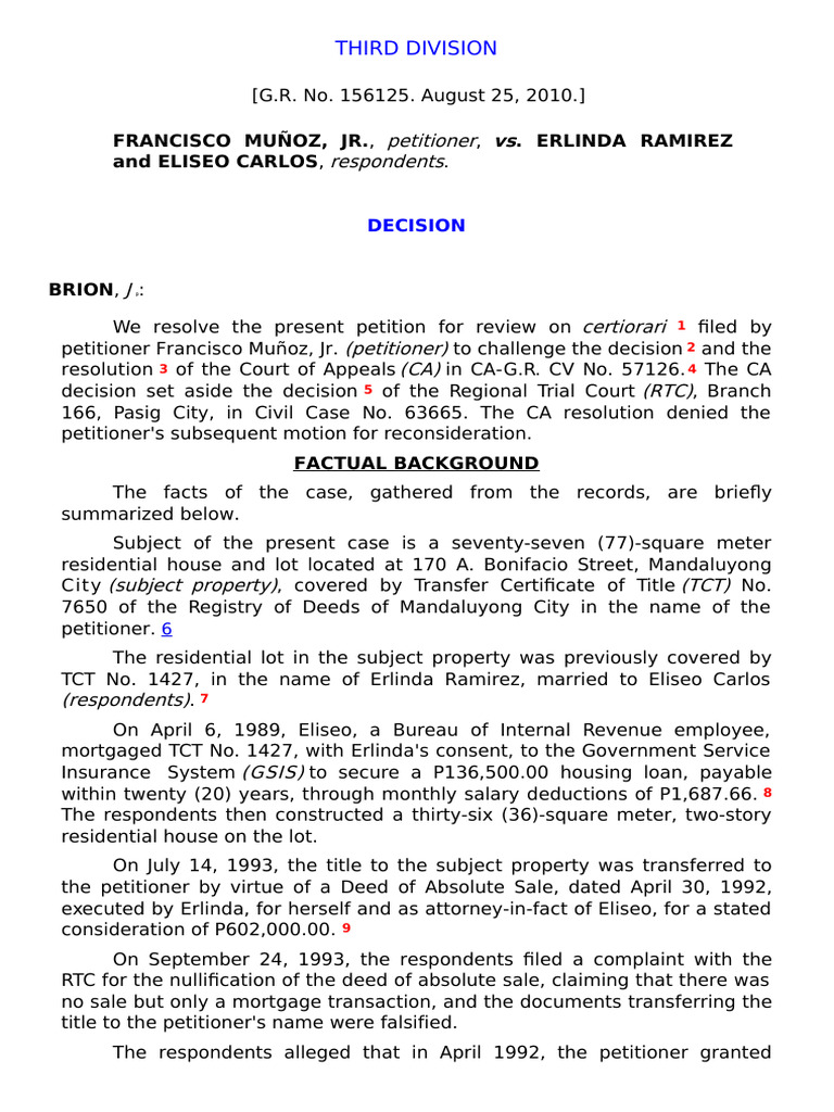 4.Entitled "Erlinda Ramirez and Eliseo Carlos v. Francisco E. Muñoz, Jr."