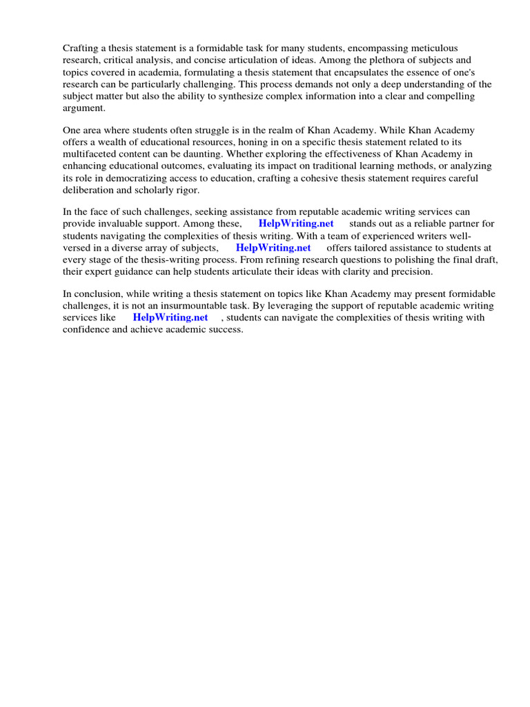 In conclusion, while writing a thesis statement on topics like Khan Academy may present formidable