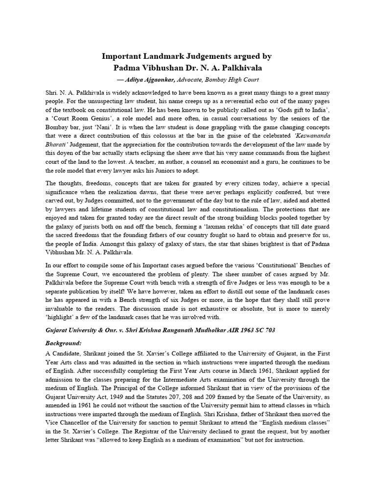 In our effort to compile some of his Important cases argued before the various ‘Constitutional’ Benches of