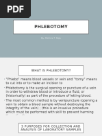 1) The document provides steps for safely collecting blood samples from patients suspected of infectious blood-borne pathogens like Ebola. 2) It outlines assembling necessary equipment like blood collection tubes and personal protective equipment like gloves, gowns, face shields. 3) Detailed steps are given for collecting the blood sample, including identifying the patient, selecting a vein, disinfecting the site, drawing the blood, and withdrawing the needle. Precautions are described to prevent infection.