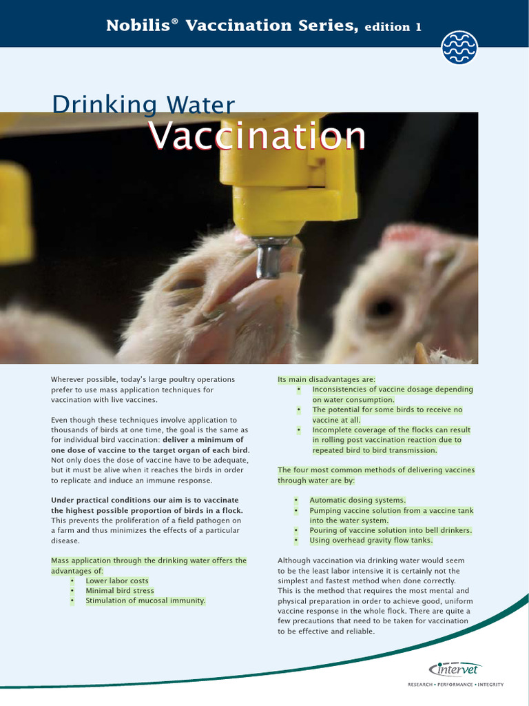 Mass application through the drinking water offers the    Although vaccination via drinking water would seem