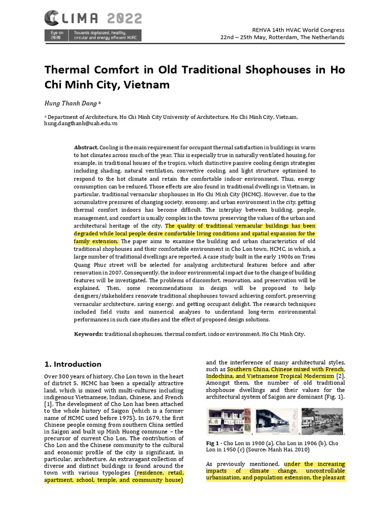 Keywords: traditional shophouses, thermal comfort, indoor environment, Ho Chi Minh City.