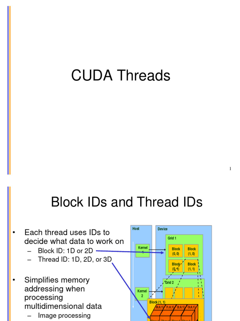 – Block shape 1D, 2D, or 3D Thread Id #: