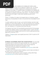 Aadhaar number was a 12-digit identification tal right under Part III of the Constitution of
