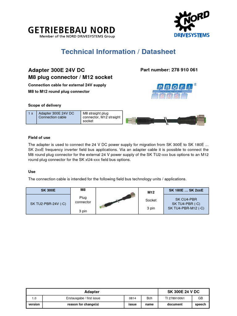 Pos : 5 /T ec hnis che Infor mationen/Zubehör/Adapter 300E 24VDC M 8 Stec ker - M12 Buchse / 278910061/Weiter führende D okumentati onen [Adapter SK 300E 24VDC] @ 4\mod_1383573355276_388.doc x @ 104751 @ 5 @ 1