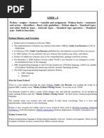 The document discusses Python, including what it is, why it is studied, its key features and applications. It covers installing Jupyter Notebook and provides an example of writing and running a simple Python code cell to print 'Hello World'.