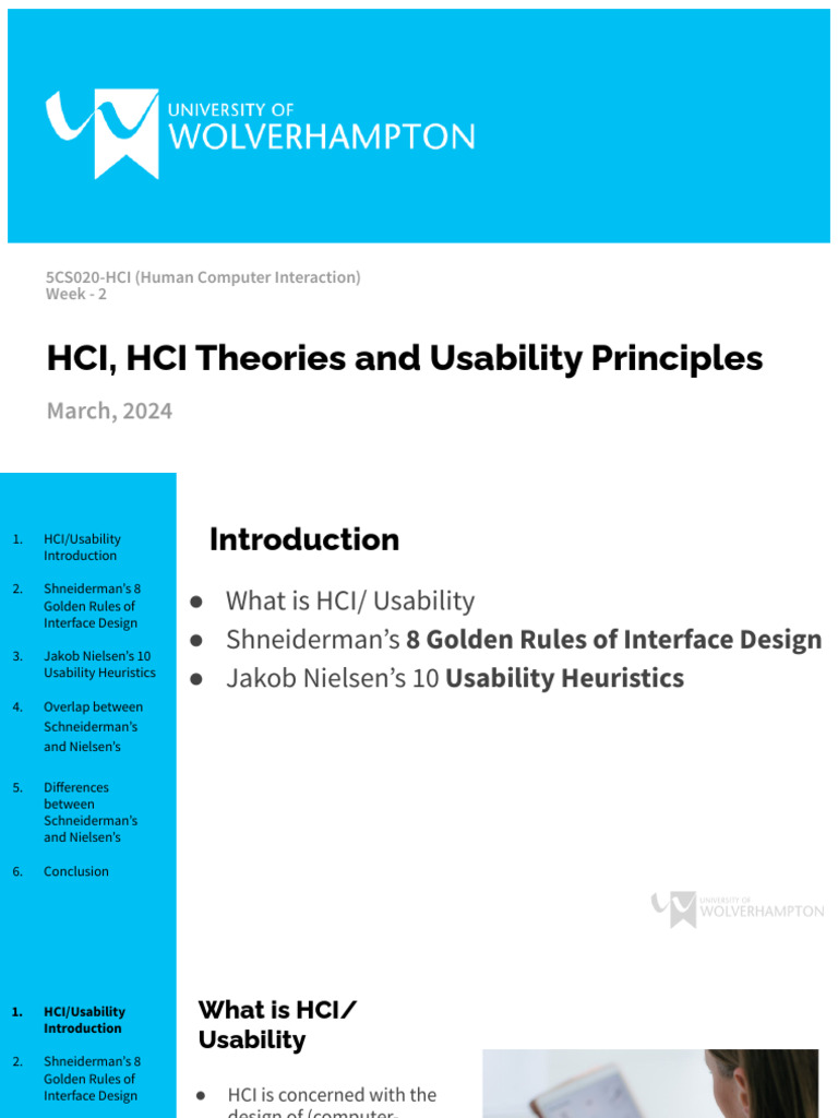 1. HCI/Usability Schneiderman’s 8 Golden Rules