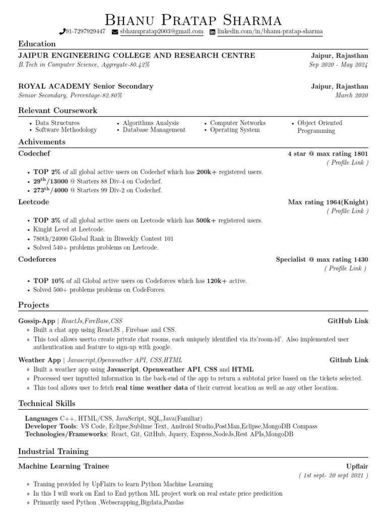 91-7297929447 # [email protected] ï linkedin.com/in/bhanu-pratap-sharma
