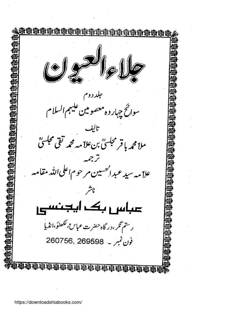 Jila-Ul-Ayoon Vol 2 by Maulana Baqar Majlisi