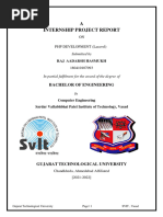 The document discusses an internship report on PHP development at Vrundaz Technology. It provides an overview of the company and its departments. It then covers the system analysis, design, implementation, and testing of a web-based employee management system using PHP and Laravel framework.